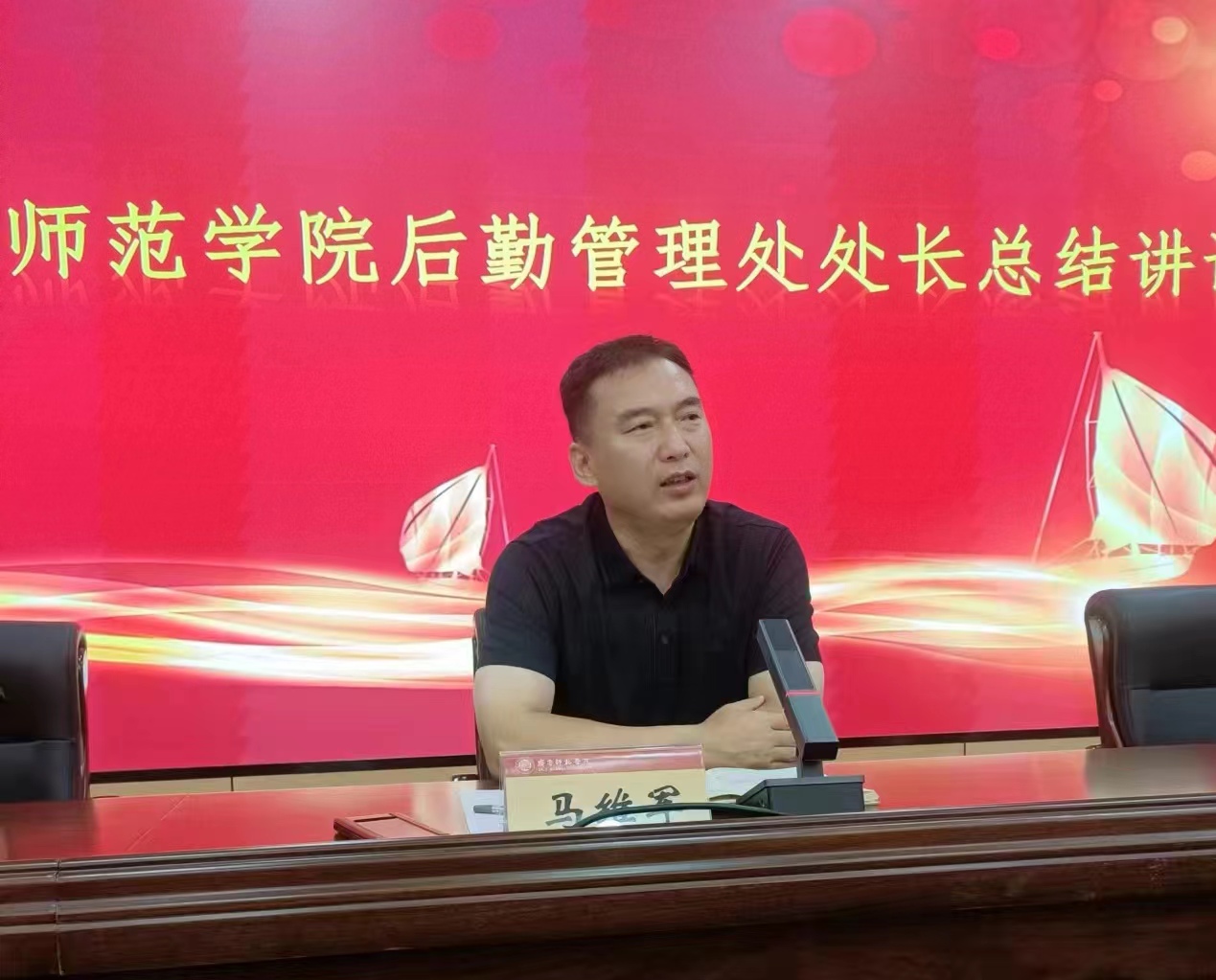 最后马维军处长总结讲话。他首先对参会人员对学校的贡献和付出表示感谢。他表示,每一位服务人员不但是学校事业发展壮大的见证者,更是参与者和建设者。他提出,时代的发展对后勤工作提出新的要求,每名服务人员要认识到所从事工作对学校事业发展的重要性,每个岗位都不可或缺。要认真贯策“三全育人”理念,认识到个人工作对学生做人、做事方面潜移默化的教育引导作用,以爱心、真心对待每一名学生,为学生的成长成才贡献力量。他对下一步工作提出三点要求。一是要加强规范化建设,围绕服务内容和合同约定,加强标准化建设,实行标准化服务;二是加强应急管理,做好应急预案,科学应对突发事件的发生,避免形成舆情;三是要牢固树立安全意识。每个人背后都是一个家庭,要以为家庭负责的态度高度重视安全,做到高高兴兴上班,安安全全回家。